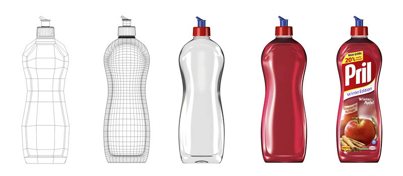 Die verschiedenen Entwicklungsphasen eines 3D-Packshots